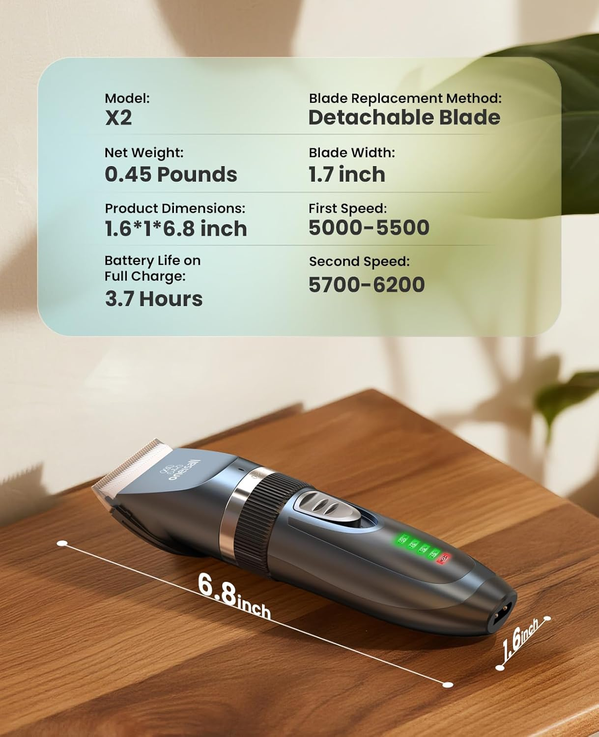- Intelligent LCD Indication: This cat clipper is designed with a LCD display,for reminding using and charging status,helping you better control the grooming work. Easy to see how much power is left.