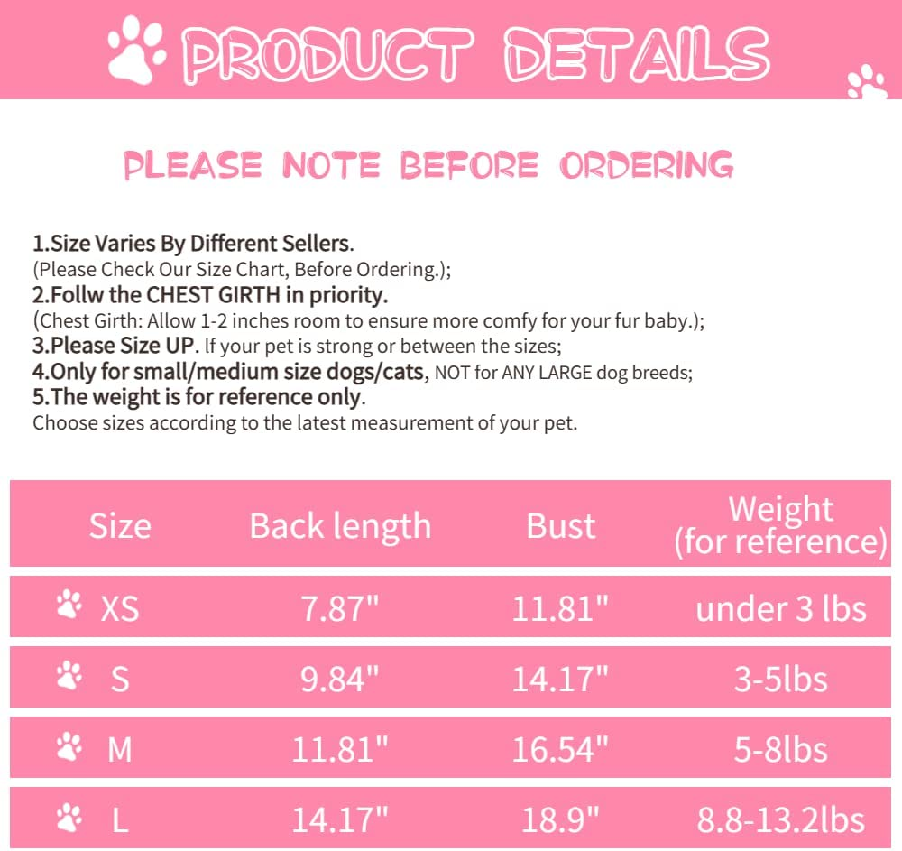 - female dog clothes【Occations 】Dog clothing appropriate season spring summer fall and winter. The puppy clothes for small dogs girl are suitable for daily wearing, walking, travel, sport, wear the dogs tshirts as a puppy pajamas at home. Also a nice prop for dog photography in seasons holiday christmas festival.